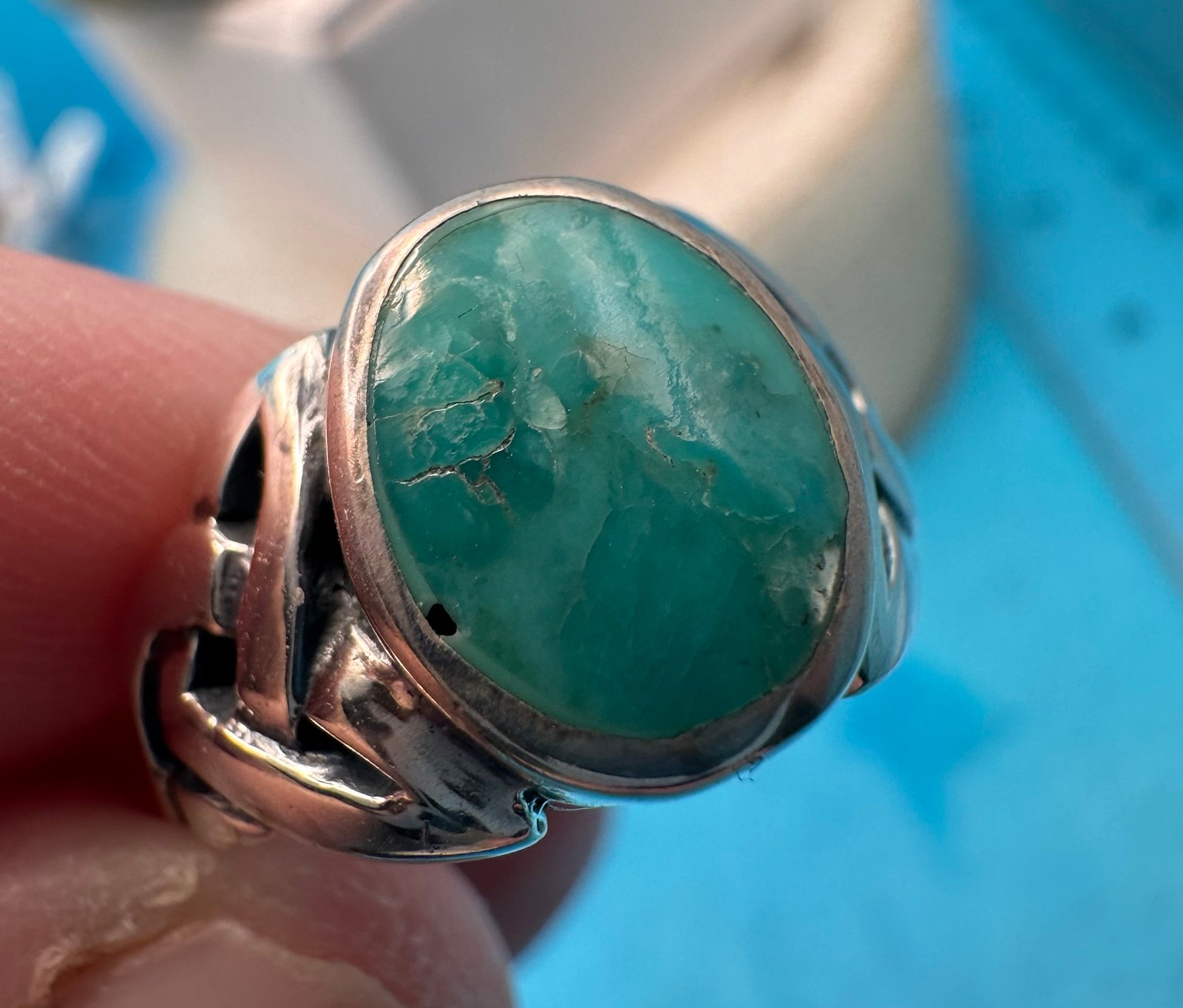 A GORGEOUS Oval cut NATURAL turquoise stone inlay set in Sterling on a Viking or Celtic inspired Trinity knot band